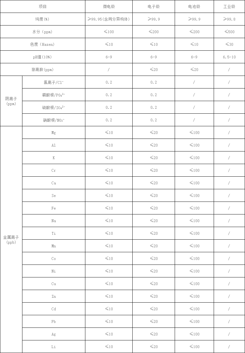 微電級:應用于液晶、半導體、線路板、碳納米管等高端微電子行業(yè)。